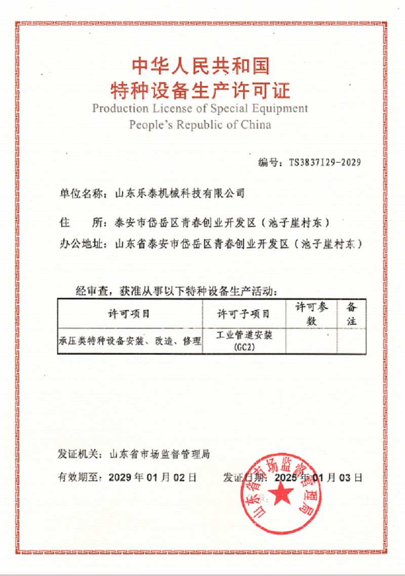 山東樂泰機(jī)械科技有限公司始建于2013年,是一家股份制高新技術(shù)企業(yè),擁有140多名各類中高級技術(shù)和技能人才,購置了大型激光切割機(jī)等先進(jìn)生產(chǎn)設(shè)備和粗糙度檢測儀等精密檢測設(shè)備。公司具有D級壓力容器的設(shè)計(jì)及制造資質(zhì),通過了ISO9001質(zhì)量管理體系認(rèn)證和3C認(rèn)證。 公司專注于中厚板及薄壁不銹鋼非標(biāo)儲罐、發(fā)酵罐、種子罐、臥式結(jié)晶機(jī)、立式結(jié)晶罐、提取罐、雙層酒精罐、沉降罐、流化床等干燥系統(tǒng)設(shè)備的設(shè)計(jì)及制造。我們致力于為淀粉糖、生物發(fā)酵、制藥、釀酒、調(diào)味品、飲料、果蔬汁、乳制品、大豆分離蛋白、酶制劑、樹脂吸附等領(lǐng)域提供不銹鋼成套裝備。多年來,我們已經(jīng)為全國百家客戶提供了服務(wù),并成功出口產(chǎn)品到法國、智利、美國、土耳其和越南等國家。